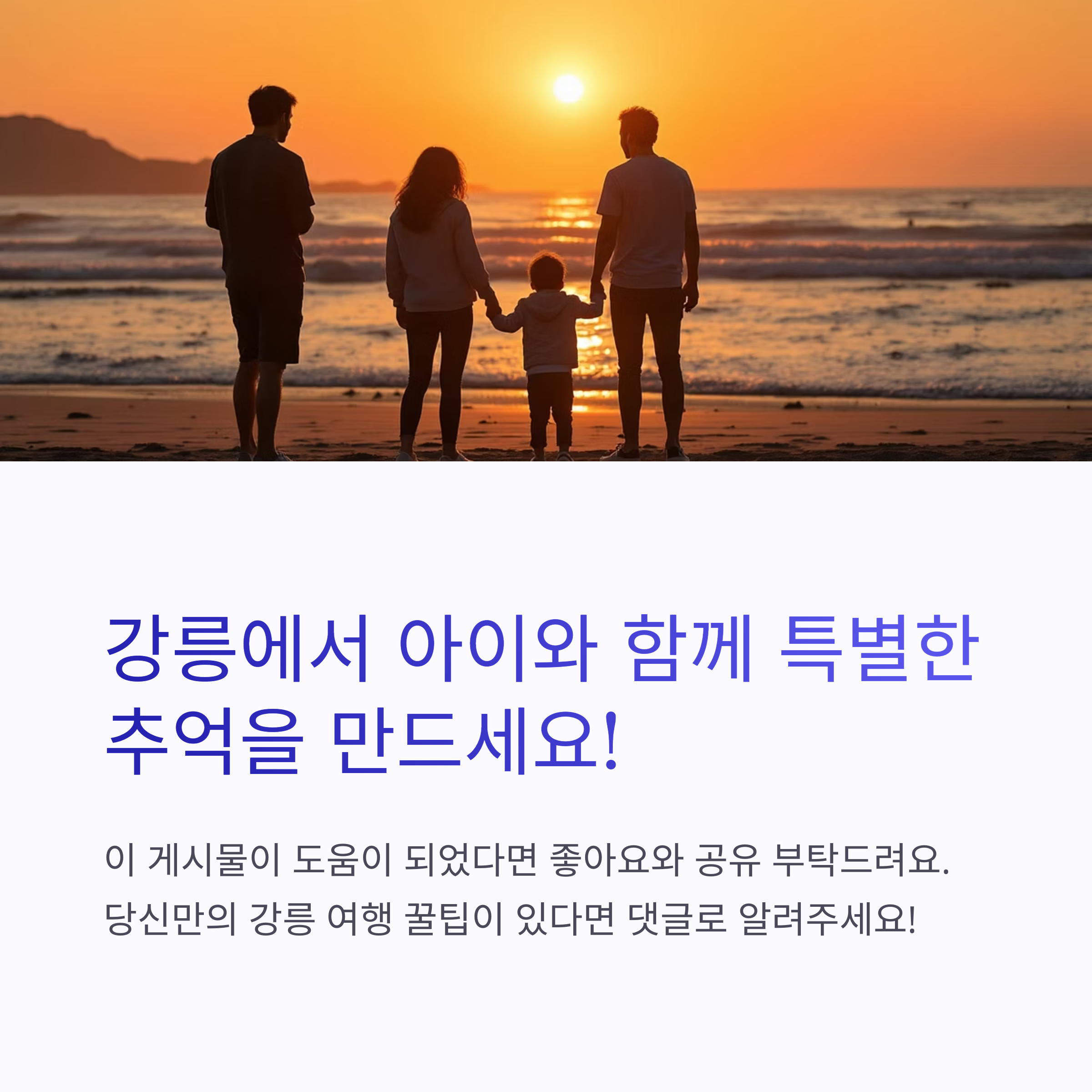 강릉 여행을 다녀오신 적 있으신가요? 추천하고 싶은 장소나 함께 나누고 싶은 가족 여행 팁이 있다면 댓글로 남겨주세요. 소중한 정보는 많은 분들에게 큰 도움이 됩니다!