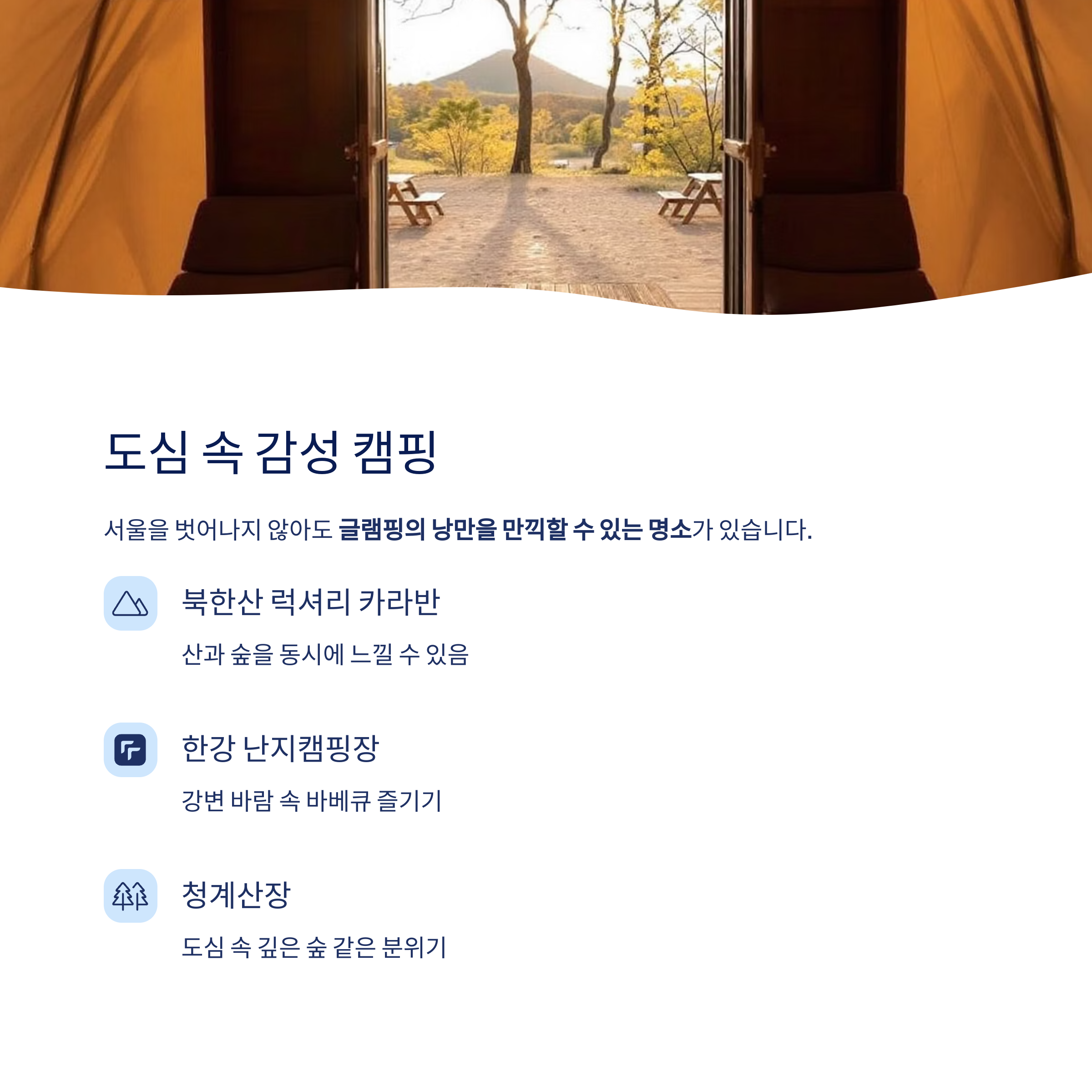 도심 속 감성 캠핑, 북한산과 한강에서 즐기자