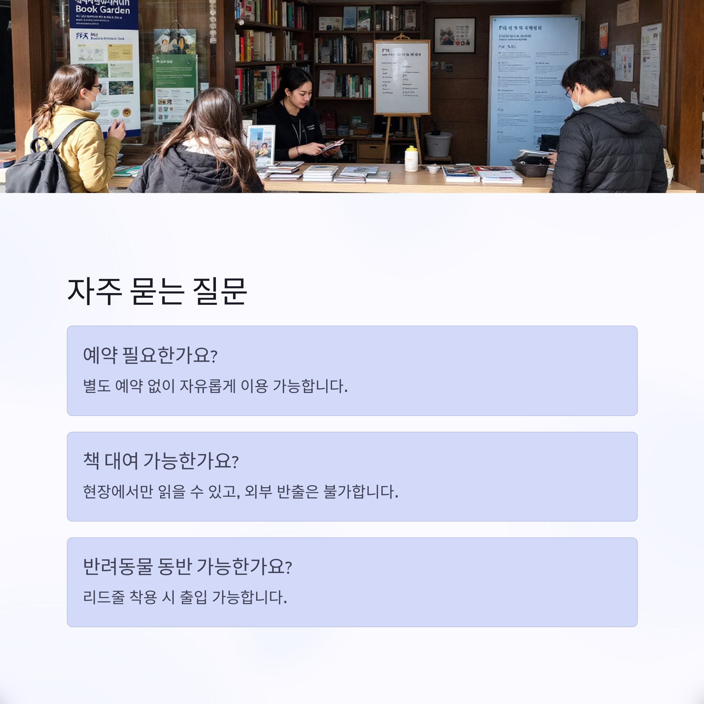 → 리드줄을 착용한 반려동물은 출입 가능하나, 타인 배려는 필수입니다.