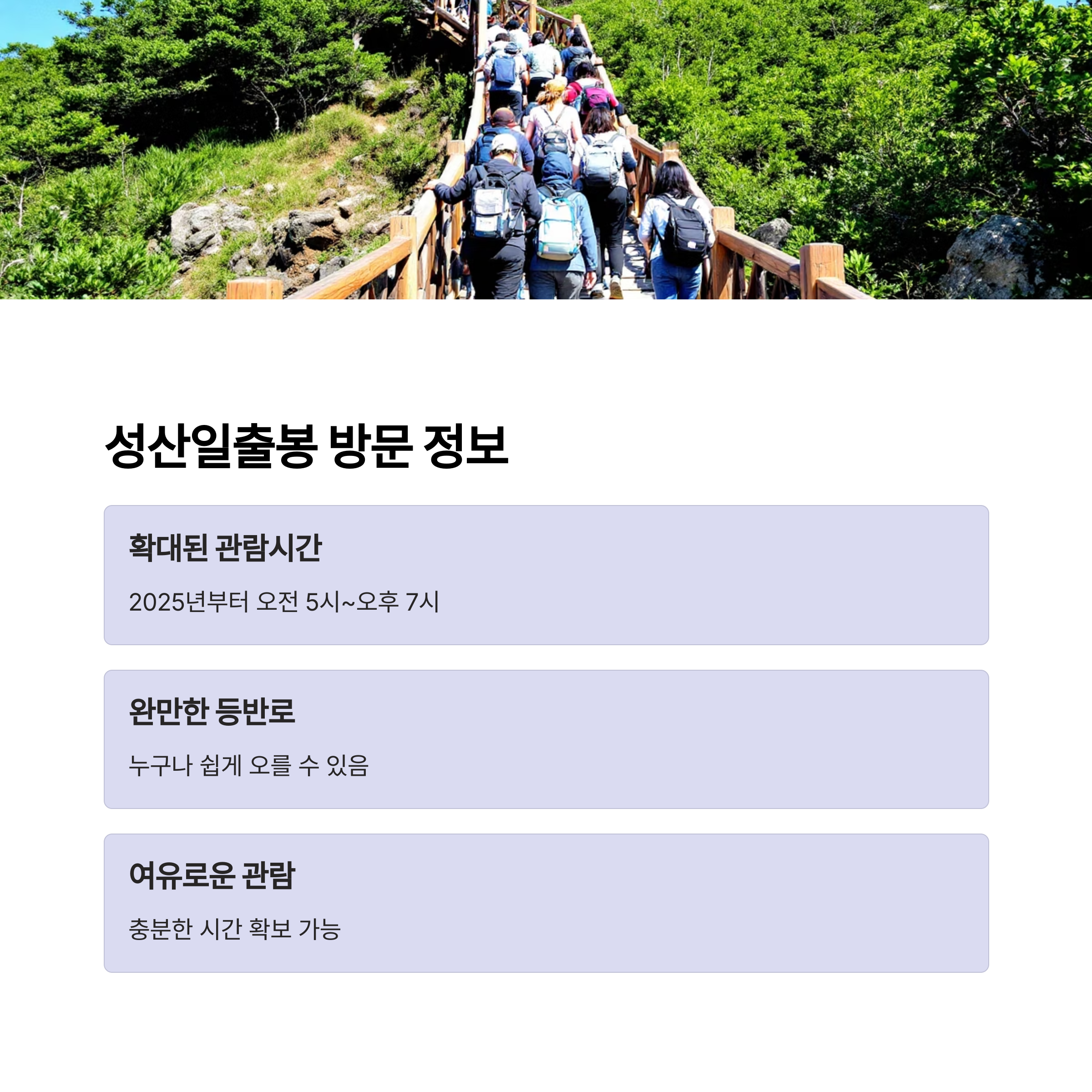 | 다양한 체험, 공연, 주차 편의 | 분화구, 억새밭, 사계절 풍경 | 하루 코스, 자연과 힐링 조합 |