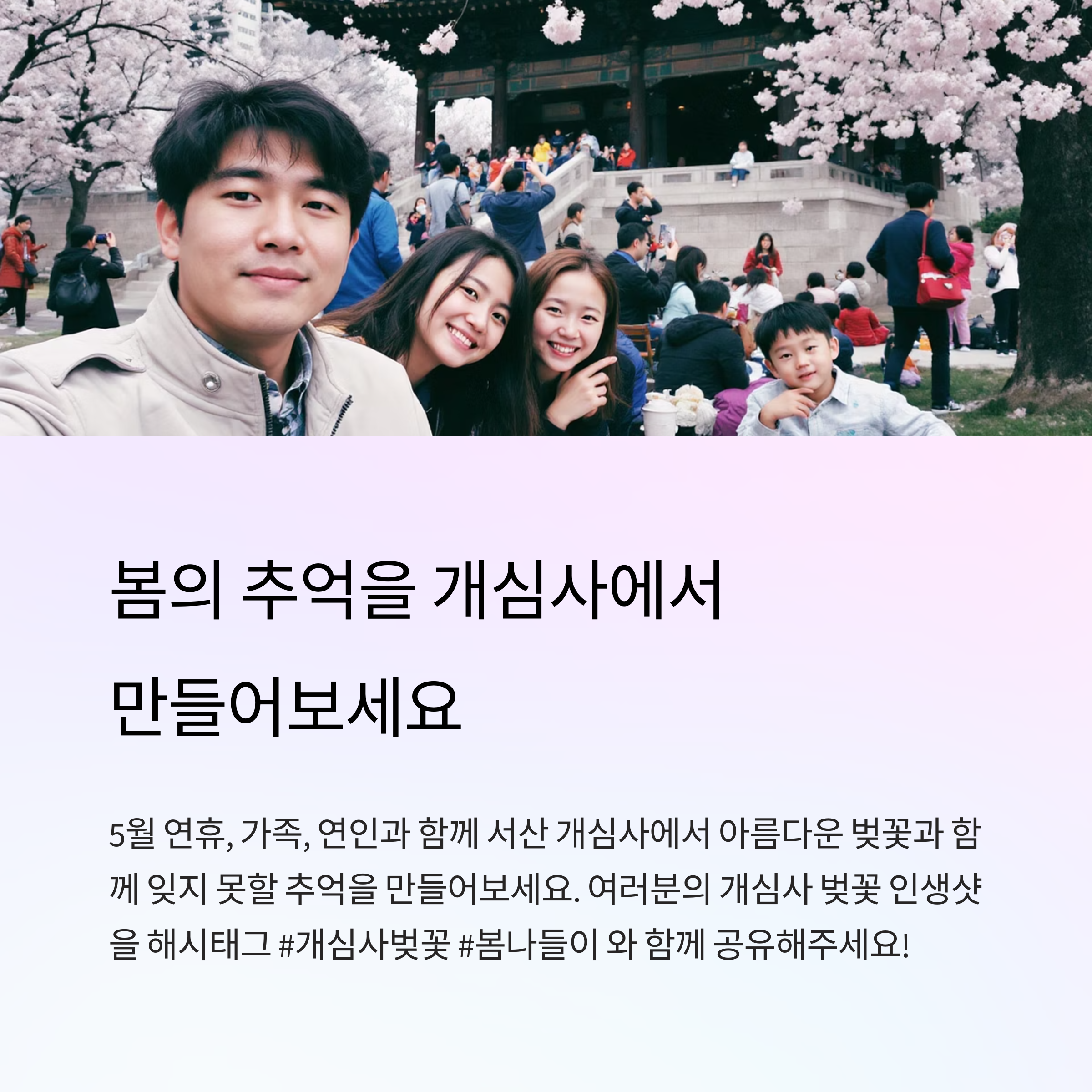 5월 연휴에 어디로 떠나야 할지 고민하고 있다면, 서산 개심사는 최고의 선택이 될 수 있습니다. 겹벚꽃과 청벚꽃이 어우러진 아름다운 봄 풍경은 누구에게나 잊지 못할 추억을 선사합니다. 입장료와 주차까지 무료인 이곳은 가성비 좋은 나들이 장소로 매년 많은 사랑을 받고 있습니다. 특히 아침 일찍 방문하면 더욱 여유로운 관람이 가능하니, 가족과 함께, 연인과 함께 또는 혼자 힐링 여행으로도 제격입니다. 주변의 자연과 조화로운 웰빙 코스도 놓치지 마세요. 따뜻한 봄날, 꽃과 자연을 만끽하며 마음까지 풍요로워지는 여행을 지금 바로 시작해 보시기 바랍니다.